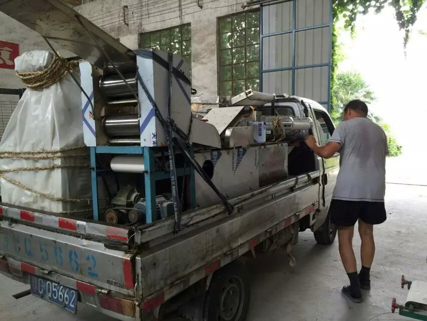 洛陽客戶經(jīng)朋友介紹后,選購和面機(jī),全自動壓面機(jī),燴面機(jī)-2型,多功能成型機(jī)。這不,兩天后自己開車過來卡設(shè)備回家,立馬開工生產(chǎn)。
