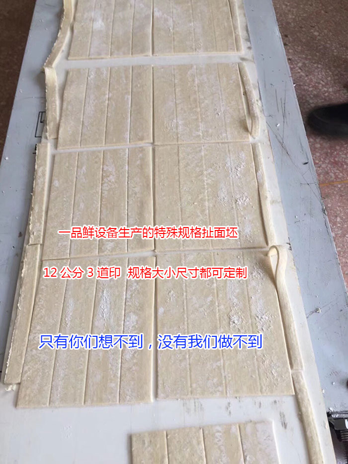 19年的面食機(jī)械生產(chǎn)經(jīng)驗(yàn),讓一品鮮掌握了更實(shí)用的生產(chǎn)技術(shù)?蛻(hù)需要各種特殊規(guī)格的面坯,我們均可生產(chǎn)出來(lái)。以下圖片就是一品鮮設(shè)備生產(chǎn)的燒餅坯,荷葉餅,扯面坯(12公分3道印),鵝蛋型燴面坯和特殊燴面尺寸。