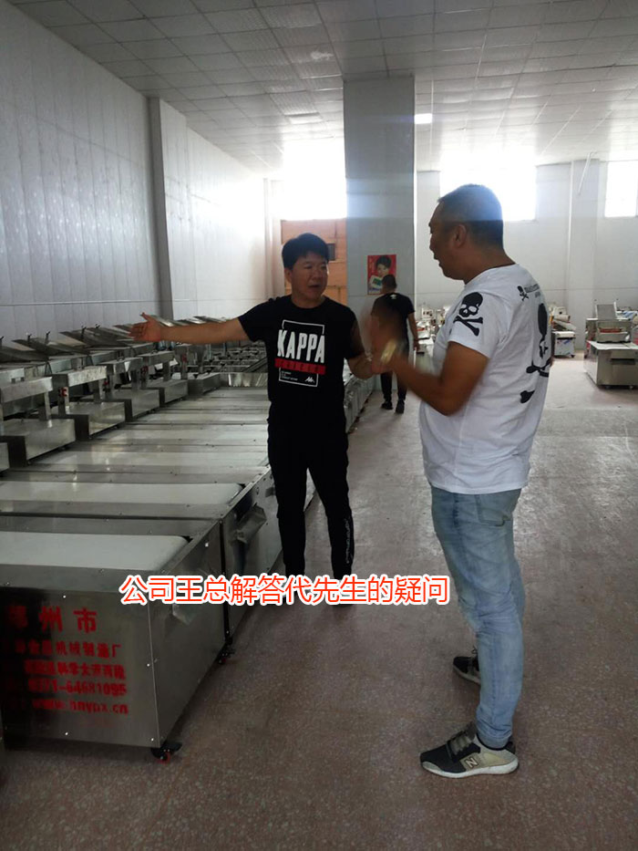 在直營批發(fā)店和工廠,王總詳細(xì)為代先生介紹了新型9代多功能設(shè)備的研發(fā)由來、產(chǎn)品優(yōu)勢、生產(chǎn)品種、維護保養(yǎng)等,并現(xiàn)場進行了生產(chǎn)實驗。代先生經(jīng)過現(xiàn)場參觀、咨詢、品嘗,結(jié)合自己的實際情況。當(dāng)即定購了一臺特殊定制款新款9代多功能成型機設(shè)備(可自動刷油+自動撒淀粉+機身加長+特殊刀具尺寸等)和一臺500型加厚款全自動揉壓機。